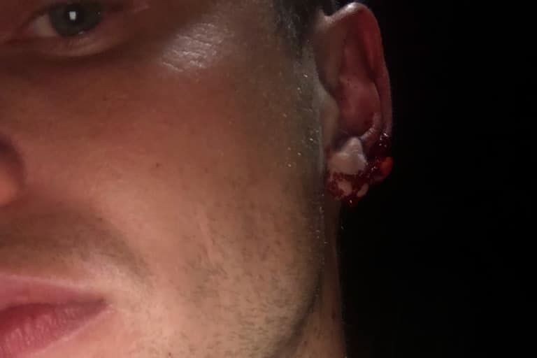 Joiner was punched in the head which knocked him to the ground and split his ear – which required 10 stitches in his earlobe – and is currently suffering bruising and swelling on his jaw.