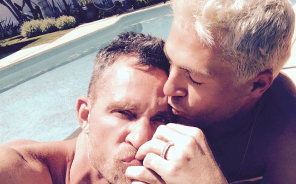 Posting a selfie of him and his beau, he captioned the snap: “I SAID YES !!! Not a bad day when you find YOUR engagement ring in a glass of vintage #domperignon and of course with Cher’s “I Got You Babe” playing in the background.”