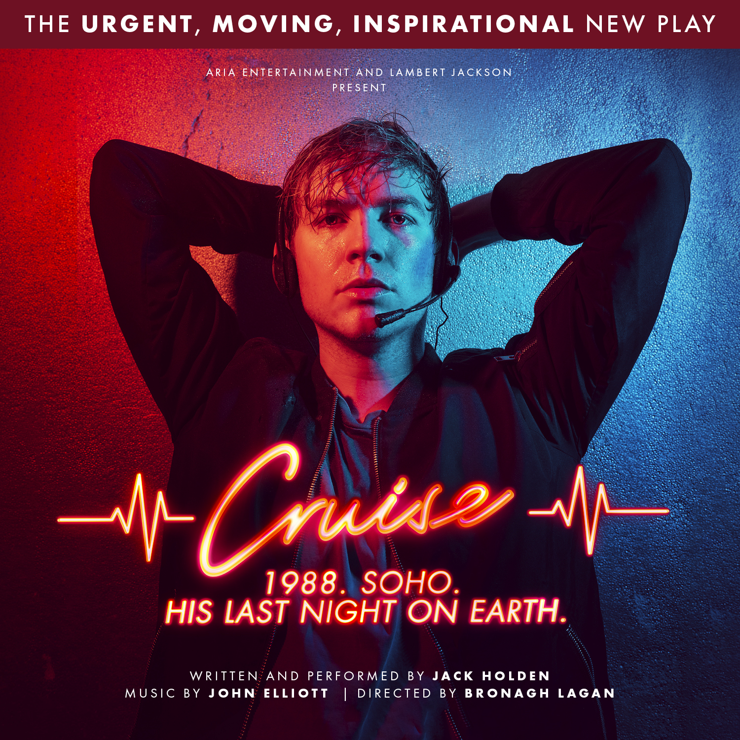 Jack Holden says of the show, which is directed by Bronagh Lagan and features a live ’80s electronic soundtrack by John Elliott: “Cruise is based on a true story I was told while I was a volunteer for Switchboard, the LGBTQ+ Listening Service. I was in a weird, unstable, self-destructive part of my early 20s.