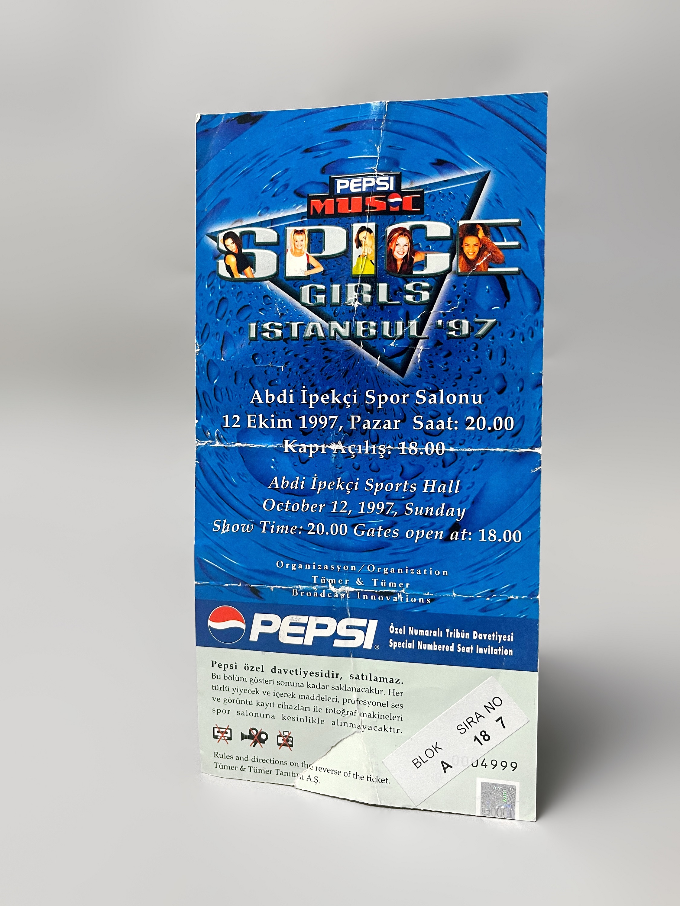 “This is an extremely rare item. Their first live concerts consisted of two nights in Istanbul, Turkey in October 1997. The audience were predominantly Pepsi competition winners and press, this concert ticket is the only one I’ve ever seen for these shows.”