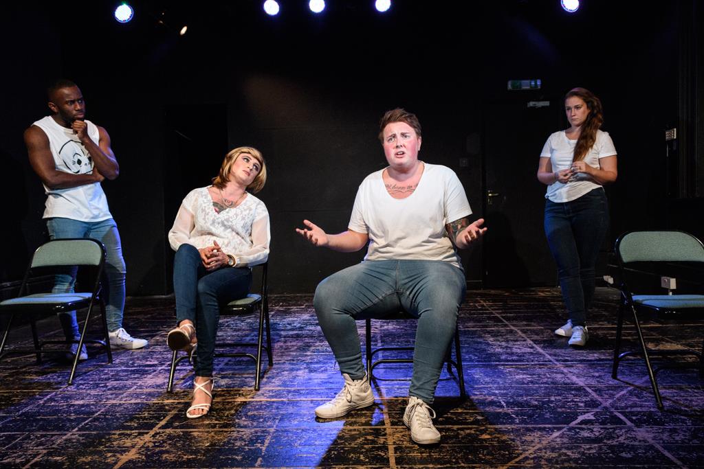 The extraordinary Kit Redstone, a trans male actor, took on male-to-female trans character Tami in the play. Redstone gave a unique and mesmerising performance, nuanced with a perfect blend of ballsy vulnerability. And Laura Jayne Ayres’ heartbreaking tales of Alicia’s alcoholic desperation managed to both invest us in her story – “I can’t just have one drink” – and also feel marginally guilty each time we sipped our pint.