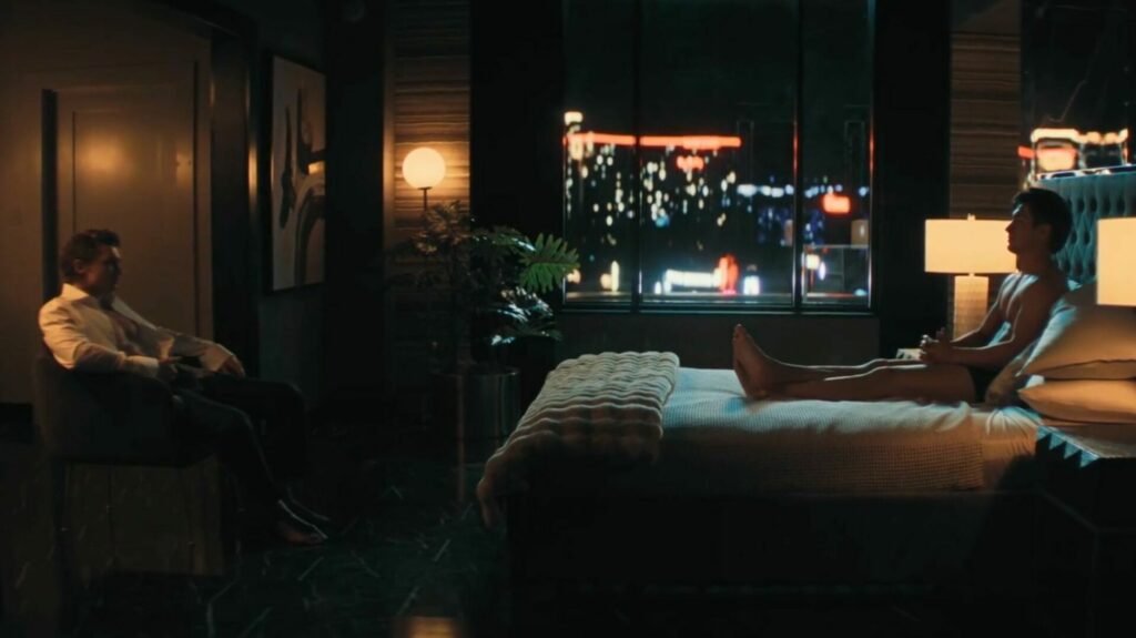 After the shower encounter, they head to Shane’s hotel room. Still hot under the collar, Shane goes down on Ilya. In a touching moment, Shane admits this is his first sexual experience with a man. They exchange oral sex, and Shane asks Ilya to keep their encounter a secret.