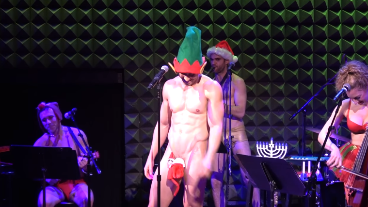 Broadway star Nick Adams, who’s been on the stage in shows such as Guys and Dolls and Wicked, joined musical group The Skivvies on stage this week for a rather x-rated elf-themed performance.