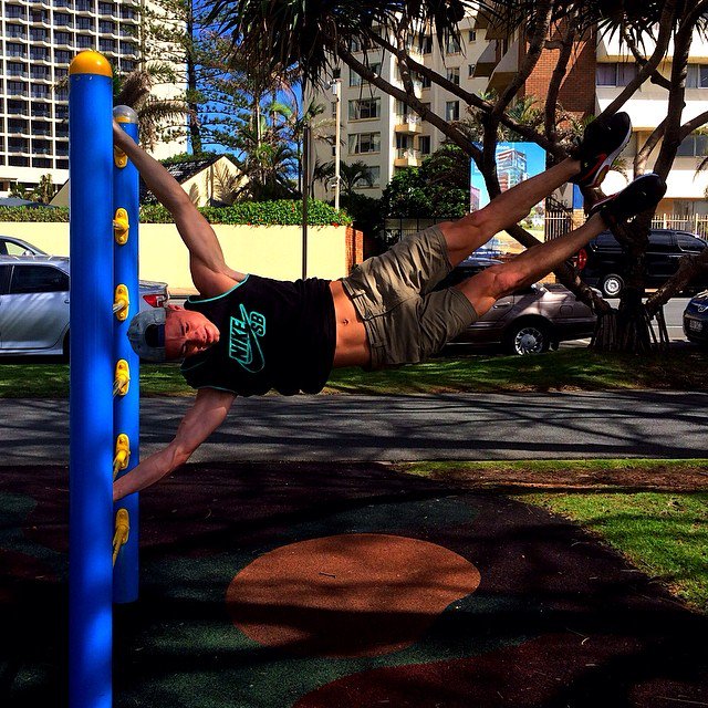 Colton Haynes on Instagram just never gets old. “Bloody calluses and sore muscles. Tryin to perfect the flag. Tmrws gonna hurt #Push” he posted yesterday (May 2), with the picture that appears below.