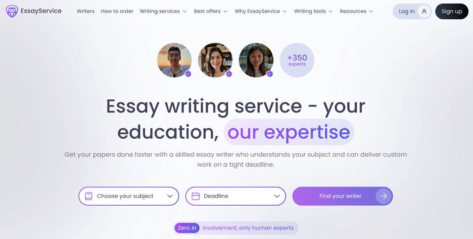 EssayService distinguishes itself as a platform focused on streamlined ordering and consistent academic quality. Its user-friendly interface is equally suitable for short standard essays and complex research projects, ensuring a hassle-free experience for every student. As a top essay writing service, it has built a positive reputation for its affordable pricing structure and transparent revision policies, offering a sense of reliability that many competitors lack.