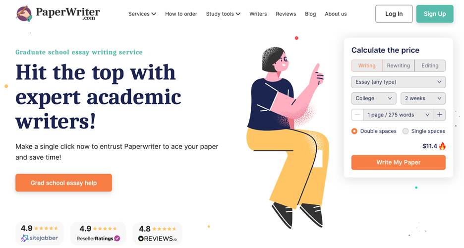 | PaperWriter | Best for polished writing and clarity | Clear, accessible writing style | Fixed price per page | Free edits to meet initial instructions | Timely delivery & originality |