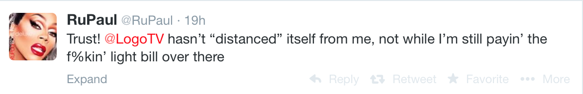 RuPaul has since insisted Logo TV has in no way “distanced” itself from his comments, though, posting on Twitter: