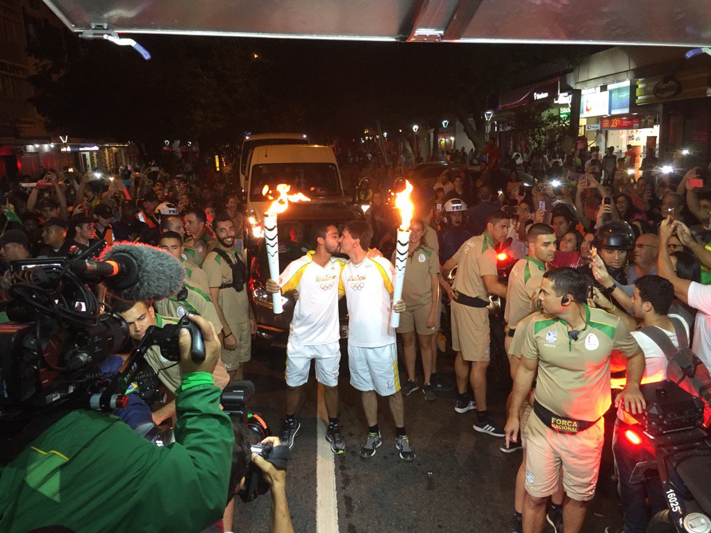 The Rio 2016 Olympics kicked off yesterday and as during the Olympic relay, two men made history as they paused to kiss.