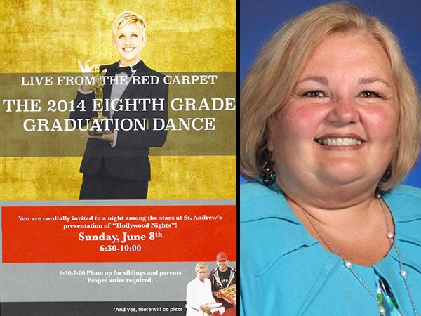 The headteacher of a Catholic school in Philadelphia has apologised to parents for using a photo of Ellen DeGeneres on an invitation (pictured below, courtesy of Philly.com) to its Oscar-themed graduation ball.