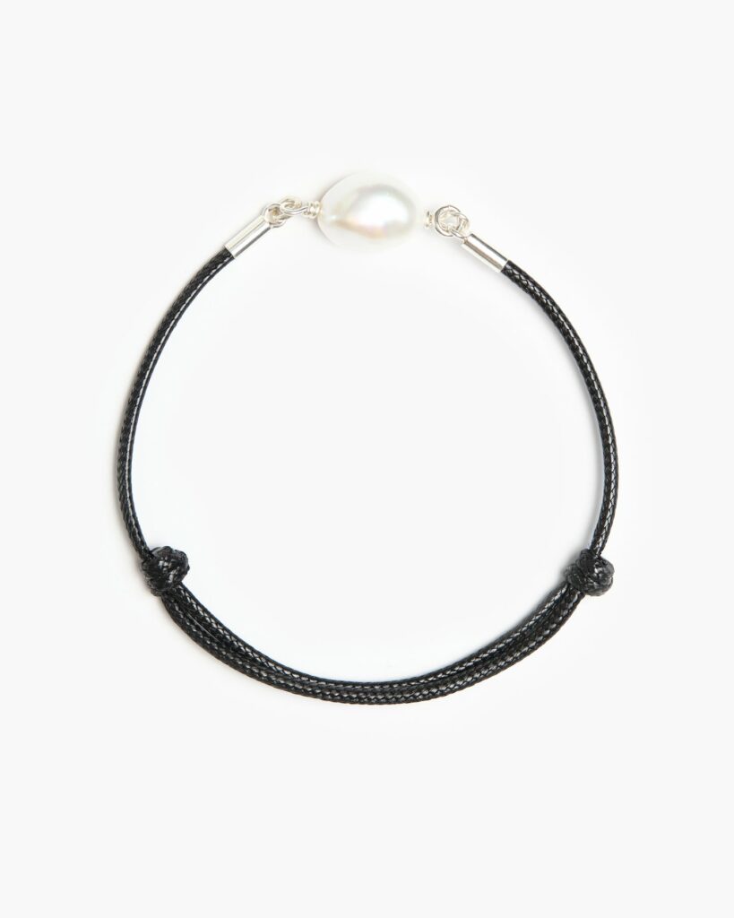 When it comes to accessorising, it’s always best to keep things clean and classic. Enter the Leather Eclipse Bracelet, which masterfully blends natural texture with minimalist design. Crafted from a black smooth leather sliding cord, it features a single freshwater pearl at the centre – a subtle focal point that brilliantly contrasts soft lustre against rich, tactile leather.