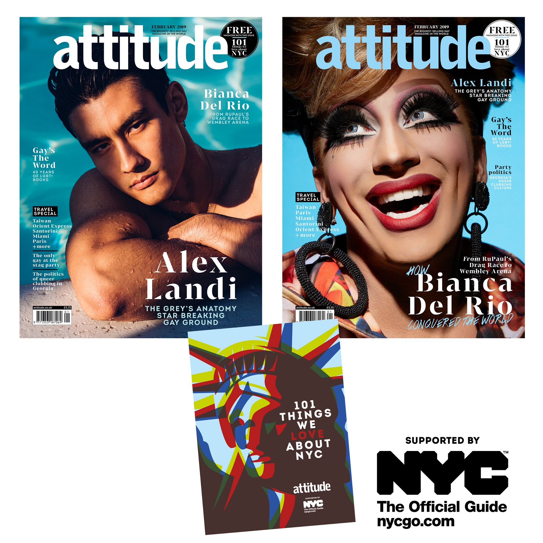 The February issue of Attitude is out now, complete with our FREE 68-page travel guide 101 Things We Love About New York City, supported by nycgo.com (available with both print and digital editions).