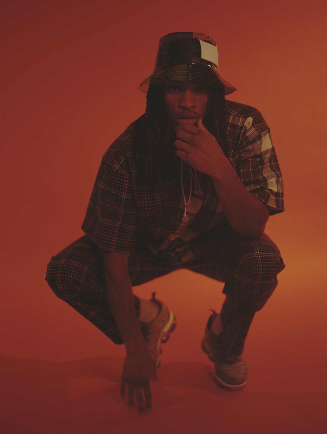 Martin wears top and trousers by Marni, hat by KIDA by Christopher Shannon, trainers by Nike at Foot Locker