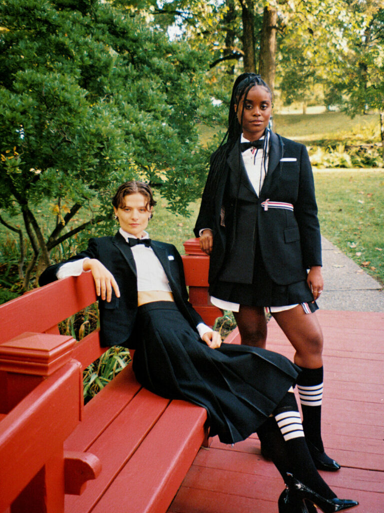 The campaign was shot in Amenia, New York with the brand’s circle of creative collaborators celebrates the new season decked out in Thom Browne. The Gilded Age’s Morgan Spector joins Louisa Jacobson, and Denée Benton, along with Rebecca Hall, The Summer I Turned Pretty’s Sean Kaufman and Minnie Mills, plus Sydney Lemon and her brother Jon Lemon.