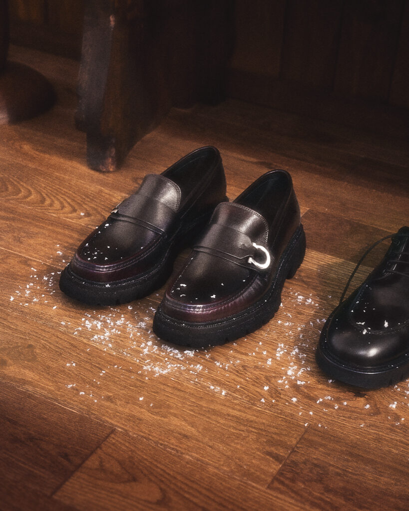Under the creative direction of Manchester-born designer Maximilian Davis, Ferragamo’s signature accessories are getting a welcome winter upgrade. Sleek loafers in antiqued calfskin feature a chunky lug sole, perfect for trekking the ice-slicked streets. Handcrafted by the brand’s artisans, each piece balances heritage with modern utility.