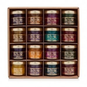 Make the season sparkle with this singularly indulgent selection. Featuring a solitary Z chocolate coated in nearly two leaves of pure food-grade 24-karat gold leaf and surrounded by fourteen of our other favorite recipes, the Sapphire with One Gold Chocolate presents an unusual opportunity to pamper someone special. Packaged in a solid mahogany box adorned with an enchanting Christmas tree embellishment,