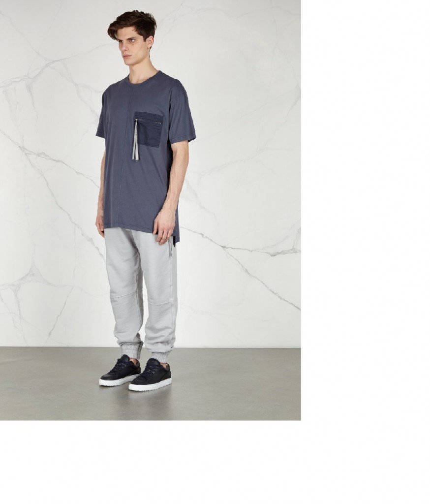 Inspired by dusty space fatigues, matching tracksuits come in both lunar white and ink blue varieties.